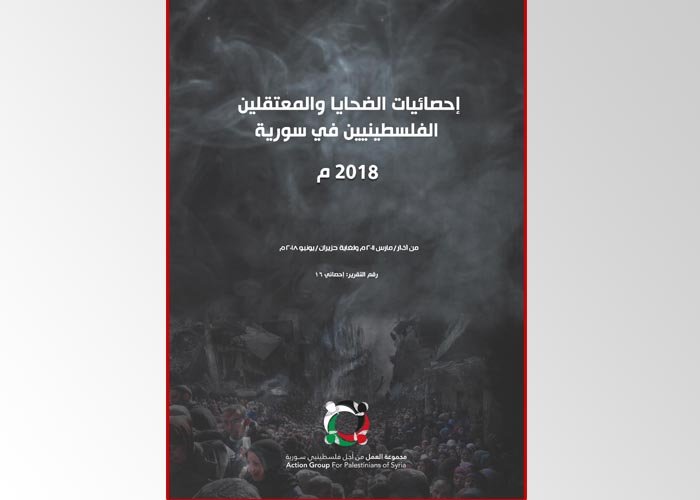 أصدرت مجموعة العمل من أجل فلسطينيي سورية، تقريرها الإحصائي ال 16 ، حيث أحصت المجموعة فيه سقوط (3799) لاجئاً فلسطينياً منذ اندلاع الأزمة السورية في آذار- مارس /2011 ولغاية حزيران – يونيو 2018 نتيجة الأعمال القتالية أو الحصار أو التعذيب حتى الموت داخل السجون والمعتقلات، أو خارج سورية على دروب الهجرة أو دول الشتات الجديد.