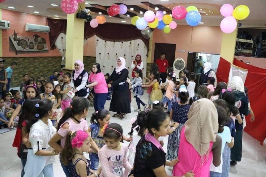 نظمت جمعية الهلال الأحمر الفلسطيني في سورية نشاطاً ترفيهياً للأطفال تحت عنوان “ابتسامتهم فرحتنا” في مخيم العائدين للاجئين الفلسطينيين بحمص.