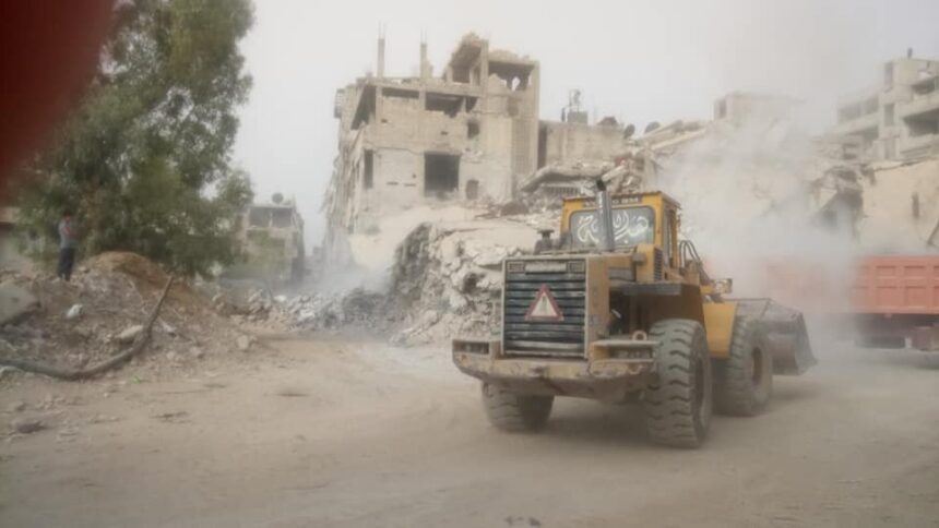 استمرار رفع الأنقاض وإزالة الركام في مخيم اليرموك