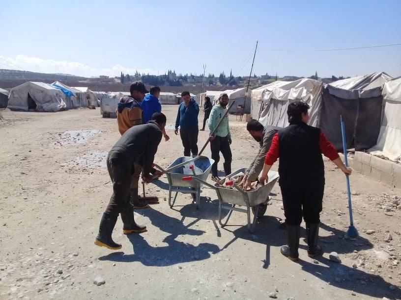 كما يقدّم الفريق خدماته التطوعية لمحاولة التخفيف من آثار المعاناة ومساعدة العائلات النازحة في تأمين احتياجاتهم و النظافة داخل المخيم، وبعض برامج الرياضة والترفيه والدعم النفسي للأطفال حسب الإمكانيات المتوفرة والقدرة على العمل.