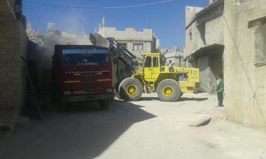 أفاد مراسل مجموعة العمل جنوب سورية، أنه تم ترحيل أكثر من (2400) متر مكعب من ردميات مخيم درعا للاجئين الفلسطينيين جنوب سورية، حيث أشرفت مؤسسة “بضمة شباب سورية” عن رفع الركام من شوارع المخيم الرئيسية والمغلقة، الأمر الذي لاقى ترحيباً وارتياحاً بين الأهالي.