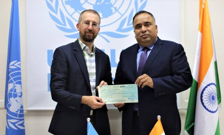 تبرعت حكومة الهند بمبلغ قيمته 5 ملايين دولار لصالح ميزانية وكالة الأمم المتحدة لإغاثة وتشغيل لاجئي فلسطين (الأونروا) لدعم برامج الوكالة الرئيسة وخدماتها، التي تشمل التعليم والرعاية الصحية والإغاثة والخدمات الاجتماعية. وقد تم تقديم التبرع للأونروا من قبل ممثل الهند لدى دولة فلسطين سعادة السيد سونيل كومار.