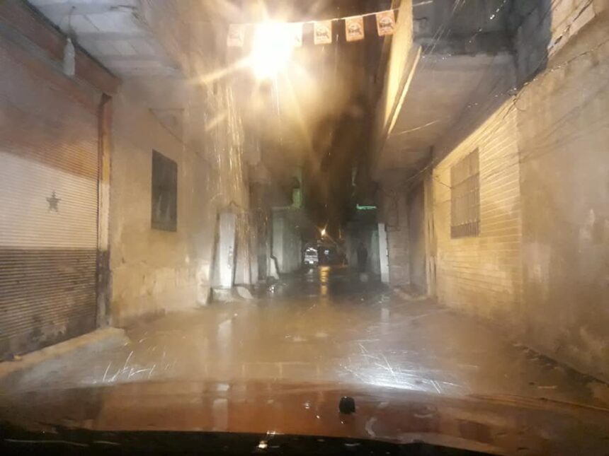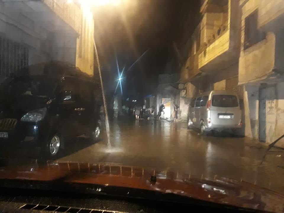 فيما أظهرت صور نشرتها إحدى صفحات منصات التواصل الاجتماعي (الفيس بوك) المعنية بنقل أخبار مخيم خان دنون مياه الأمطار تداهم عدداً من المنازل، في حين غرقت شوارع المخيّم بالمياه وسط هطول غزير للأمطار.