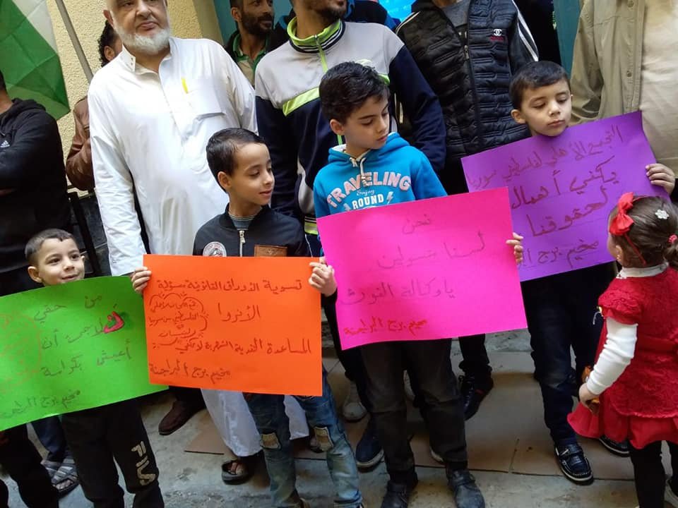 من جانبهم سلم المعتصمون رسالة إلى مدراء مكاتب الأونروا شرحوا فيها معاناة فلسطينيي سورية في لبنان والواقع المعيشي القاسي الذي يعانونه ، مطالبين من وكالة الغوث العمل على التخفيف من مأساتهم من خلال تلبية مطالبهم المتمثلة بتسليم المساعدة النقدية المقدمة للعائلات الفلسطينية السورية بالدولار الامريكي بدلاً من الليرة اللبنانية، عدم التأخر في تعبئة بطاقة الصراف الآلي الخاصة بفلسطينيي سورية، وصرفها بموعدها المحدد ، زيادة المساعدات النقدية كبدل ايواء وطعام والمساعدة الشتوية 100%، تفعيل بند الحماية القانونية والجسدية، العمل على تسوية أوضاع فلسطينيي سورية القانونية خاصة منهم من لا يملك أوراق ثبوتية أو الذين دخلوا بعد 16/9/2016، والذين دخلوا خلسة ومن وضعت على أوراقهم للترحيل، التخلص من الروتين الإداري المتعلق بالإحالات الطبية، وتسهيل إجراءات التحويل والحالات الطارئة، ومراعاة الحالات الصعبة، وتغطية كافة العمليات الجراحية.
