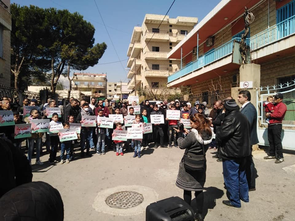 نفذ فلسطينيو سورية في لبنان اعتصاماً اليوم الثلاثاء 3 أذار/ مارس أمام مدراء مكاتب الأونروا في المخيمات والتجمعات الفلسطينية في كل من مدينة صيدا ومخيم عين الحلوة ومنطقة البقاع الغربي ومخيم برج البراجنة في بيروت ومخيمي البداوي ونهر البارد في طرابلس، وذلك تلبية لدعوة أطلقها تجمع اللجان الأهلية لفلسطينيي سوريا لمطالبة وكالة الغوث بتحمل كامل مسؤولياتها تجاه فلسطينيي سورية وزيادة مساعداتها النقدية وتحسين واقعهم الخدمي والإغاثي والتعليمي والاستشفائي والقانوني.