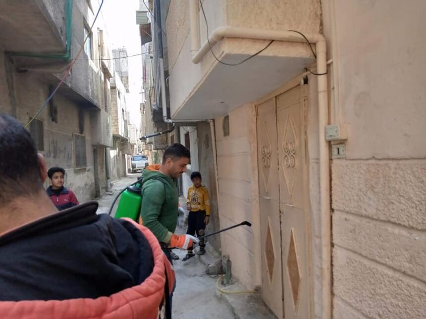 نظمت وكالة “الأونروا ” بالتعاون مع المجتمع المحلي، في مخيم درعا للاجئين الفلسطينيين جنوب سورية، حملة تنظيف وتعقيم لشوارع وأزقة المخيم يوم 30/3/2020، وذلك ضمن الإجراءات المتبعة للوقاية من فايروس كورونا المستجد كوفيد 19.