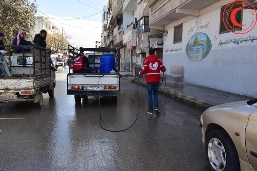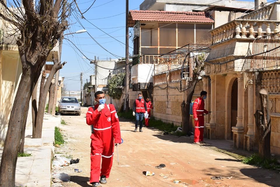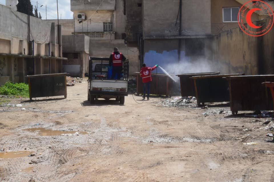 بالصور: جانب من فعاليات حملة العقيم والمكافحة الاحترازية لفايروس كورونا التي تقوم بها دائرة الشباب والمتطوعين في لجنة مخيم النيرب في محافظة حلب شمال سورية.