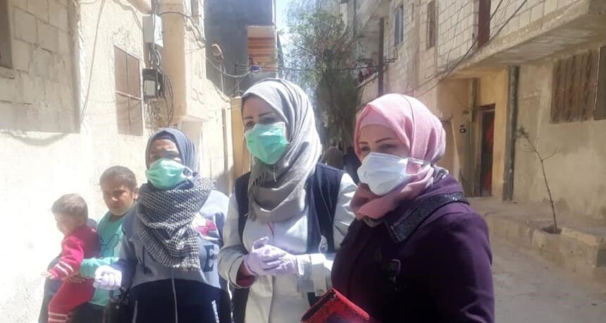 تحت عنوان “أخوات المرجلة عند الأزمات” نظمت عدد من اللاجئات الفلسطينيات حملة نسائية تطوعية في مخيم الحسينية بريف مشق للعمل على مواجهة فايروس كورونا.