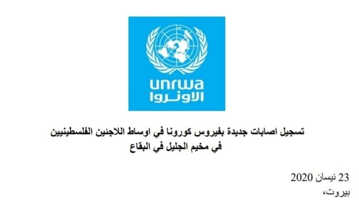 أعلنت وكالة الأونروا تسجيل أربع إصابات جديدة بفيروس كورونا بين اللاجئين الفلسطينيين من سورية في مخيم الجليل بمدينة بعلبك في لبنان.