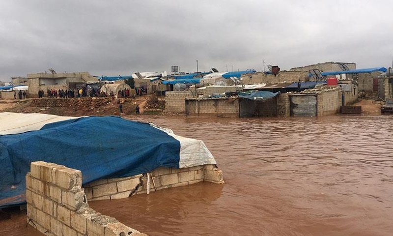 أحدثت عاصفة مطرية ضربت مخيمات النازحين في ريف ادلب الشمالي، اضراراً كبيرة بخيم المهجرين التي تحوي مئات العائلات.