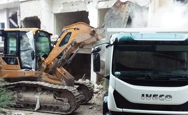 استمرار ترحيل الأنقاض من حيّ الحجر الأسود