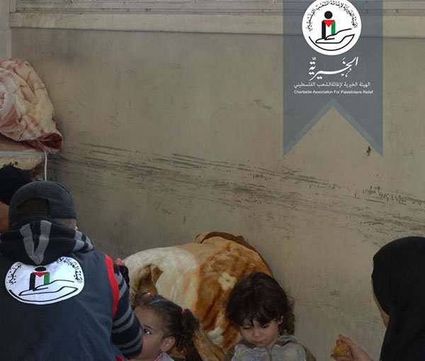 قامت الهيئة الخيرية لإغاثة الشعب الفلسطيني وعدد من المؤسسات الخيرية، بتقديم وجبات الطعام لعدد من العائلات النازحة من مخيم اليرموك والمقيمة في مدرسة زينب الهلالية، حيث وزعت وجبات غداء وحلويات على أكثر من 100 شخص.