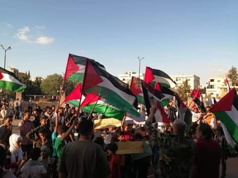نظمت الفصائل الفلسطينية في مدينة درعا وبمشاركة أهالي المدينة ومخيم درعا مساء يوم الأحد 23 أيار/ مايو مسيرة ابتهاجاً بانتصار المقاومة الفلسطينية ونصرة لأهل فلسطين في القدس وغزة.