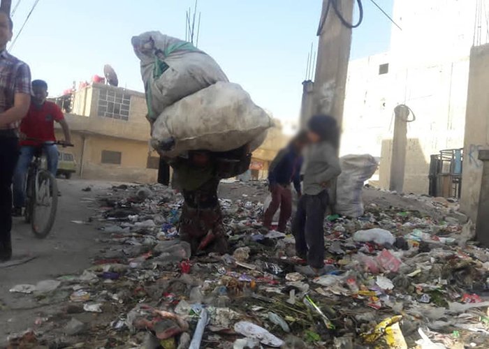 فاقمت الحرب السورية وغياب الدعم الاقتصادي والاجتماعي من مأساة اللاجئين الفلسطينيين في سورية، ومع قلة البدائل وغياب الحلول وجد عدد من الأطفال أنفسهم بعد غياب المعيل بسبب الوفاة او الاعتقال او الاختفاء القسري مضطرين للقيام بأعمال لا تناسب مع أعمارهم والبحث في مكبات القمامة لكسب رزقهم وإعانة أسرهم.