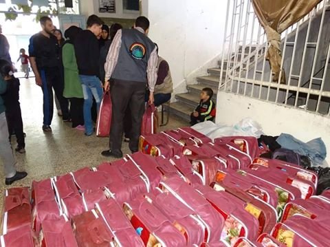 وزعت “الهيئة الخيرية لإغاثة الشعب الفلسطيني ” بالتعاون مع “هيئة الإغاثة العالمية “، ومؤسسة “كنا وسنبقى” 83 غطاء للتدفئة وملابس وأحذية على النازحين من مخيم اليرموك مؤخراً، والمقيمين حالياً في مدرسة زينب الهلالية، كما وقدمت الهيئة الخيرية للعائلات النازحة وجبات غذاء وحلويات وحليب أطفال، بمشاركة الأمانة السورية للتنمية، وجمعية القدس الخيرية .