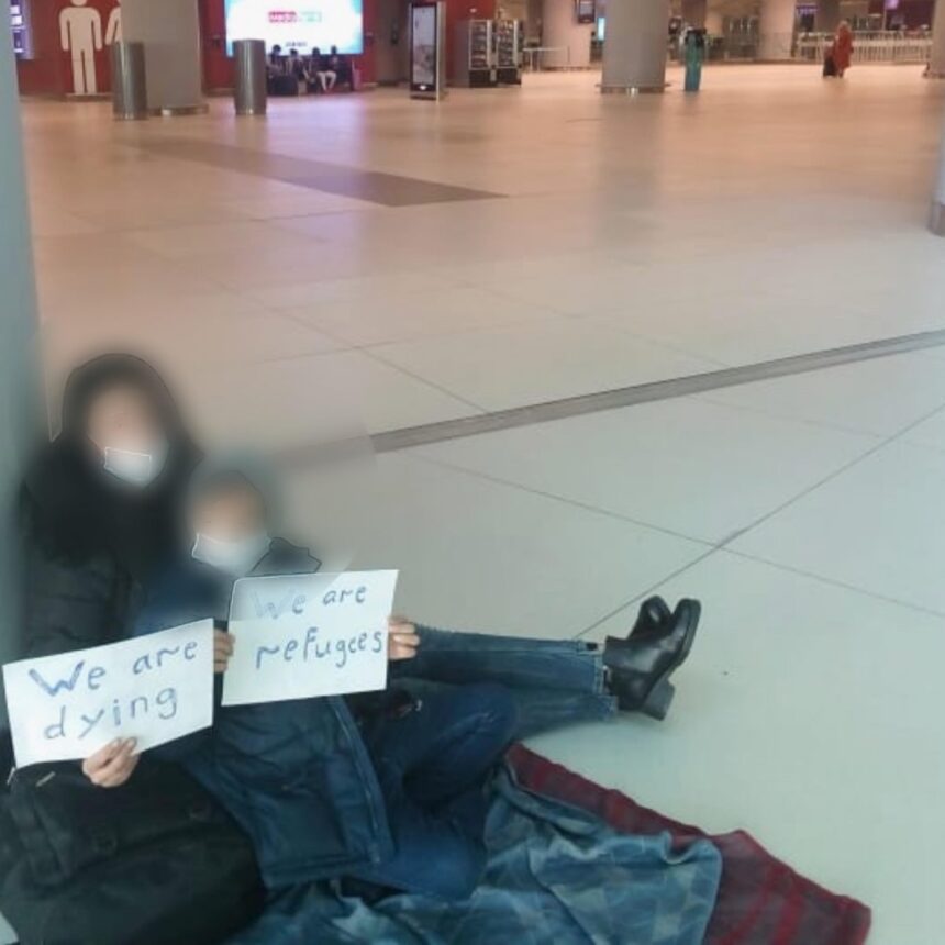 ويضيف اللاجئ أنهم فقدوا أوراقهم الثبوتية في مطار إسطنبول بتركيا، وبعد عمليات بحث وتواصل مع أمن المطار لم يستطع الحصول عليها، وعلقت العائلة في المطار خمسة أيام، وأشار محمد أنهم لاقوا سوء المعاملة والإهمال من قبل أمن المطار، وتعرضه للضرب من قبل الأمن بعد رفع العائلة شعارات مكتوبة تطالب بحل مشكلتهم، إضافة إلى منحهم وجبة يومية واحدة ونومهم على الأرض في ظل طقس بارد.