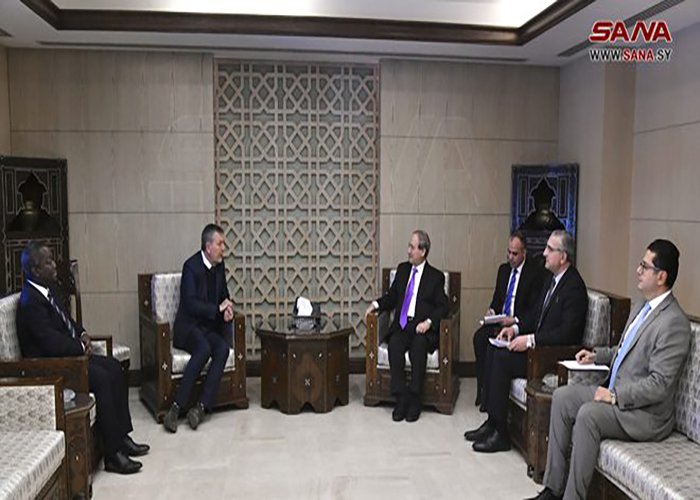التقى فيليب لازاريني المفوض العام لوكالة غوث وتشغيل اللاجئين الفلسطينيين (أونروا) اليوم الخميس 19/01 الدكتور فيصل المقداد وزير الخارجية والمغتربين السوري، وبحث معه أهم القضايا المتعلقة باللاجئين الفلسطينيين بالمخيمات والتجمعات في سورية.