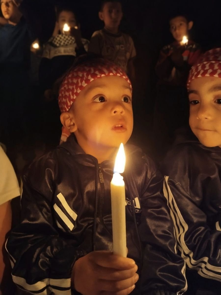 أضاء عشرات الأطفال الفلسطينيين من أبناء مخيم جرمانا للاجئين الفلسطينيين بريف دمشق، الشموع حداداً على قرنائهم الذين لقوا مصرعهم خلال العملية العسكرية الإسرائيلية الأخيرة في غزة، وللتعبير عن وقوفهم إلى جانب أهلهم في القطاع جراء ما يتعرضون له من إبادة جماعية على يد قوات الاحتلال الإسرائيلي.