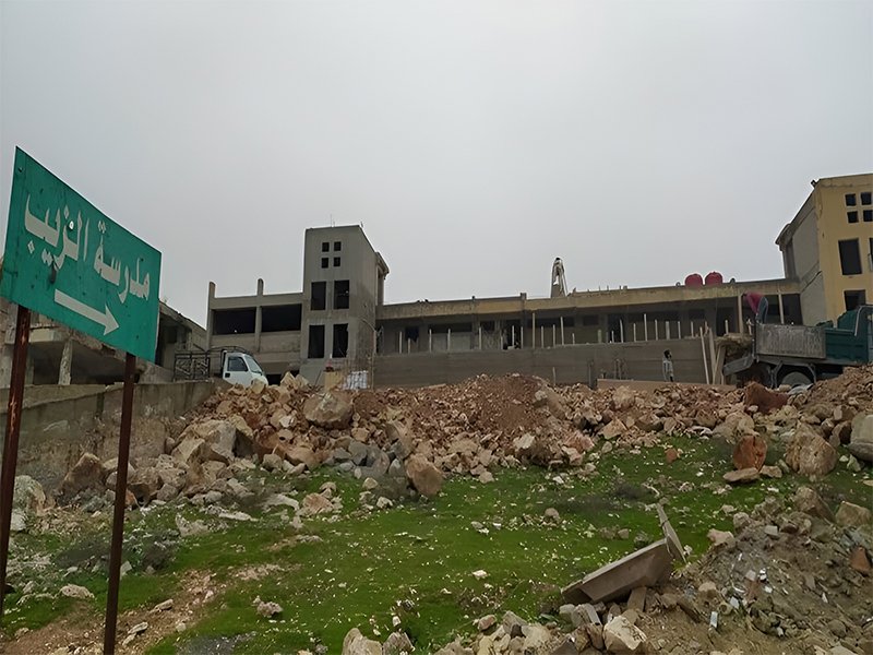 مراسل مجموعة العمل في حلب ذكر أن أعمال البناء والترميم في مدرسة الزيب أنهت المرحلة الأولى، حيث شملت بناء الهيكل الخارجي من (أساسات – أعمدة – أسقف – وجدران)، منوهاً إلى أن وكالة الغوث اتفقت مع المتعهد على أن ينهي أعمال الترميم ويسلم المدرسة جاهزة نهاية شهر حزيران من عام 2024، على أن يتم استقبال طلبة مخيم حندرات بداية العام الدراسي 2023-2024.
