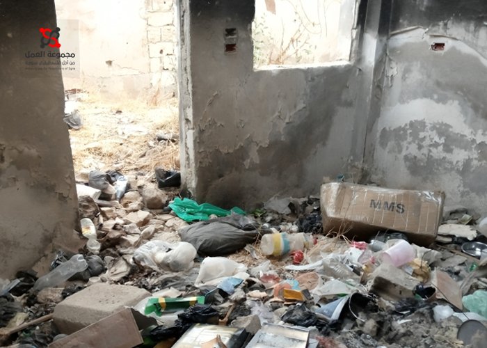 وذكر مراسل مجموعة العمل أن العديد من الأطفال يقومون برمي النفايات في هذه المنازل المهجورة، مما يتسبب في مشاكل صحية خطيرة للأهالي، بسبب الروائح الكريهة الناتجة عن تكدس القمامة وانتشار الحشرات والقوارض في معظم المنازل.