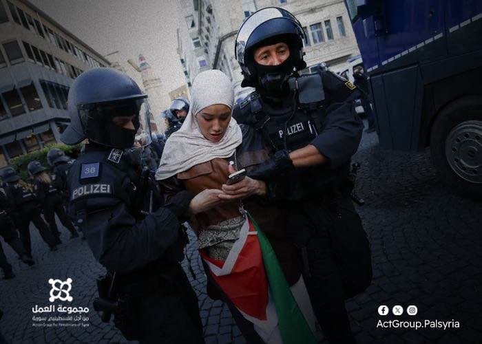 تدين مجموعة العمل من أجل فلسطينيي سورية، بشدة الانتهاكات والقمع التي تمارسها الشرطة الألمانية ضد المتظاهرين الفلسطينيين السلميين في برلين، المطالبين بوقف حملات الإبادة الجماعية التي يمارسها الاحتلال الاسرائيلي في غزة وعموم فلسطين.