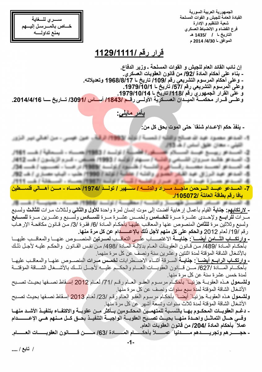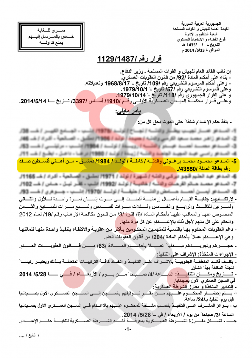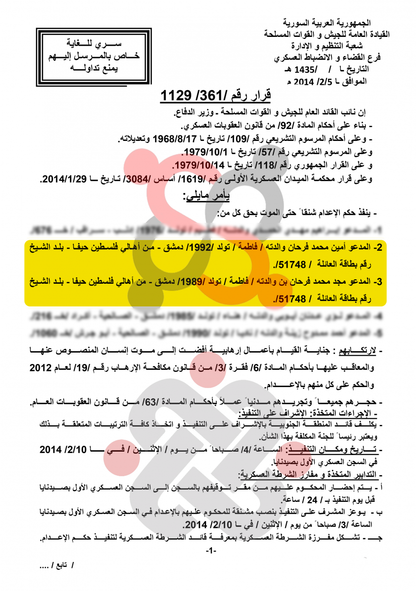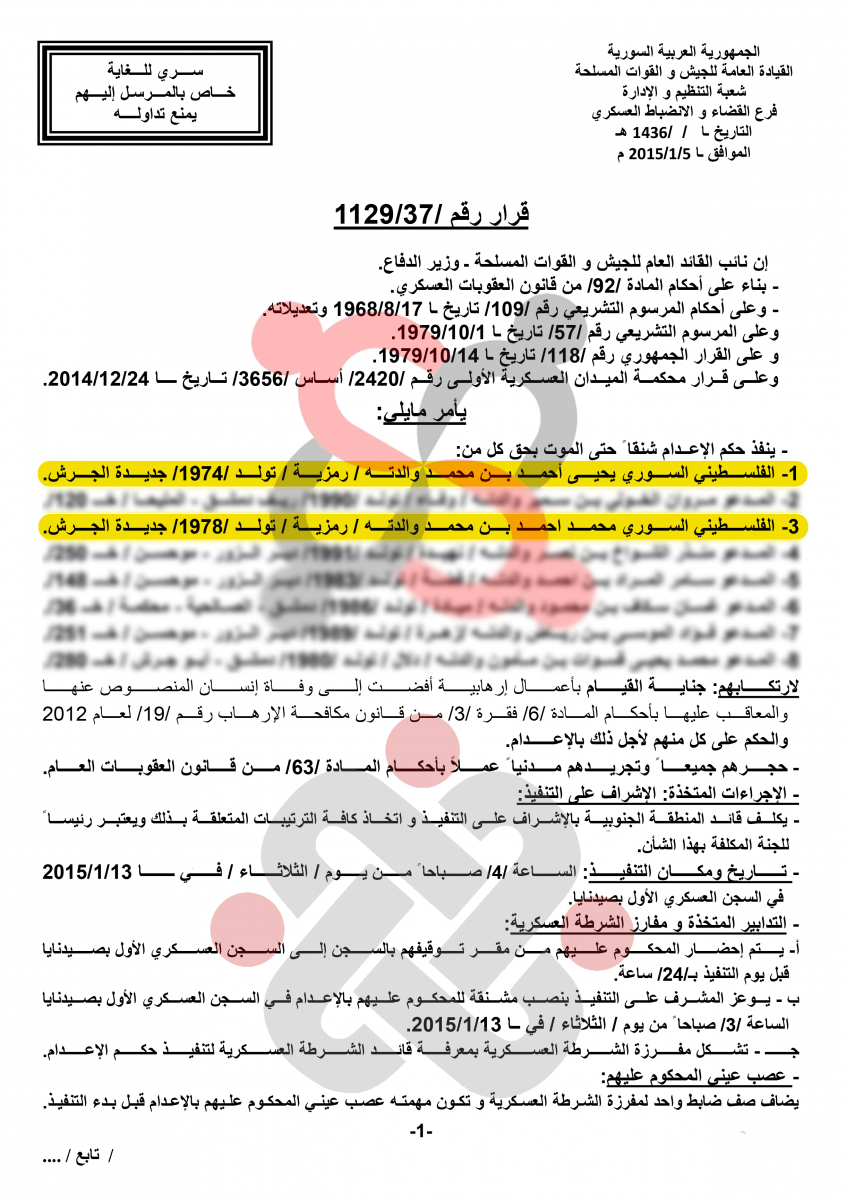 وأظهرت الوثائق، المستمدة من أرشيف الثورة السورية، أسماء الضحايا الذين أُعدموا دون محاكمات عادلة أو إخطار لعائلاتهم، وهم: