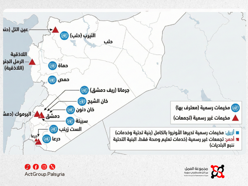 ـ ملاحظة هامة: عدم الاعتراف بالمخيم “رسمياً” لا يعني عدم تقديم الخدمات للاجئين فيه. يحق للاجئ الفلسطيني المسجل لدى الأونروا الحصول على خدمات التعليم والصحة والإغاثة بغض النظر عن مكان سكنه، سواء كان داخل مخيم رسمي أو في تجمع غير رسمي.