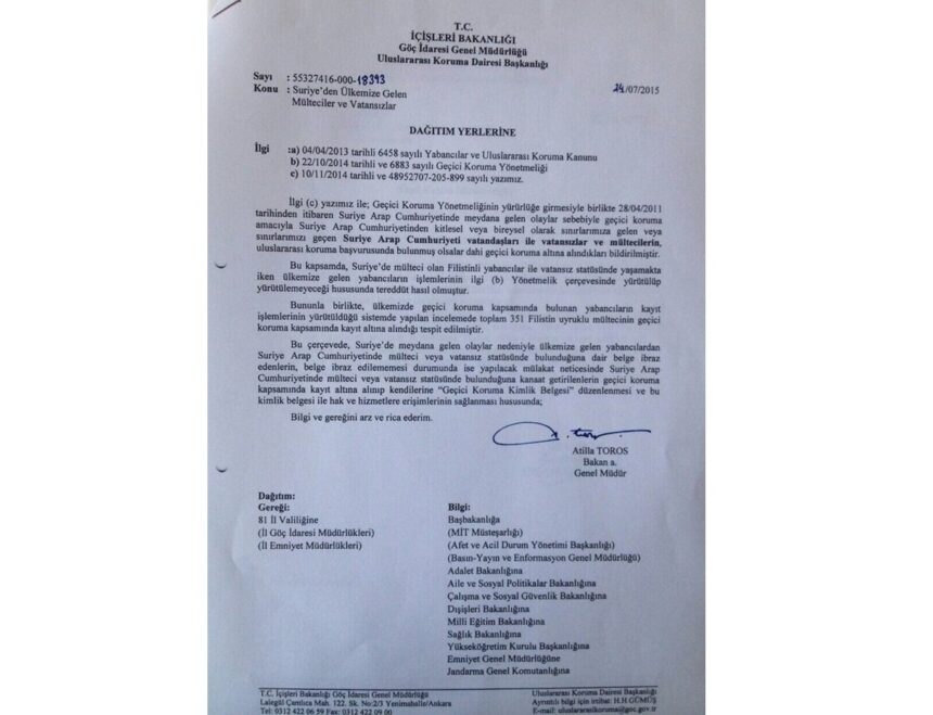 دائرة حماية اللاجئين التركية تسمح لفلسطينيي سورية المتواجدين في تركيا بالحصول على بطاقة الحماية