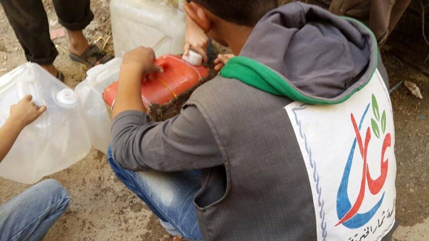 مؤسسة ثمار الخيرية تواصل تقديم مياه الشرب لأهالي مخيم اليرموك النازحين إلى بلدات يلدا وببيلا وبيت سحم المجاورة لليرموك.