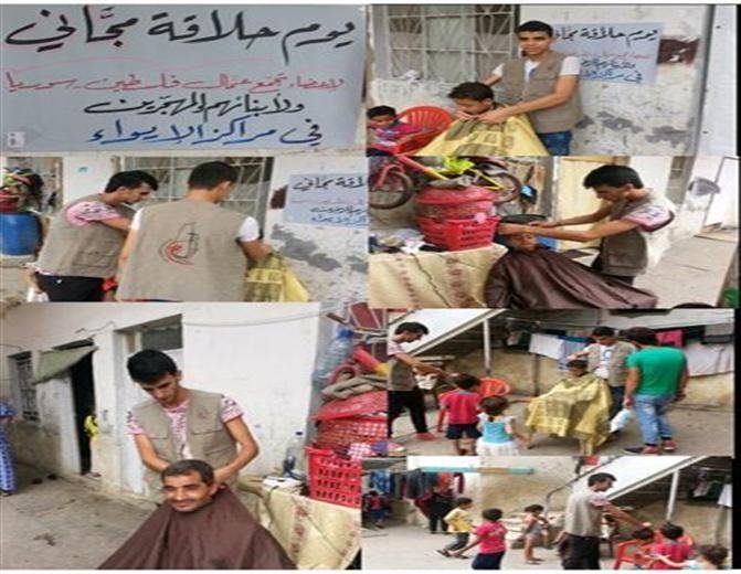 أقام تجمع عمال فلسطينيي سورية في لبنان يوم حلاقة مجاني لفلسطينيي سورية المهجرين في مركز ايواء مدرسة الكفاح بمخيم عين الحلوة جنوب لبنان، وذلك بهدف التخفيف من معاناتهم ومد يد العون والمساعدة لهم.