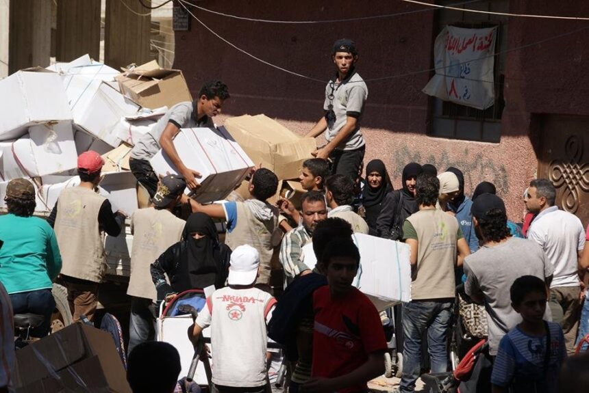 بدأت منظمة التحرير و مؤسسة جفرا توزيع دفعة جديدة من المساعدات الإنسانية على أهالي مخيم اليرموك الذين نزحوا إلى بلدات ” يلدا، ببيلا، بيت سحم “، وتضمنت المساعدات ” سللاً غذائية وصحية بالإضافة إلى حبوب لتعقيم المياه، ومن المقرر أن يستمر التوزيع لأربعة أيام متتالية.