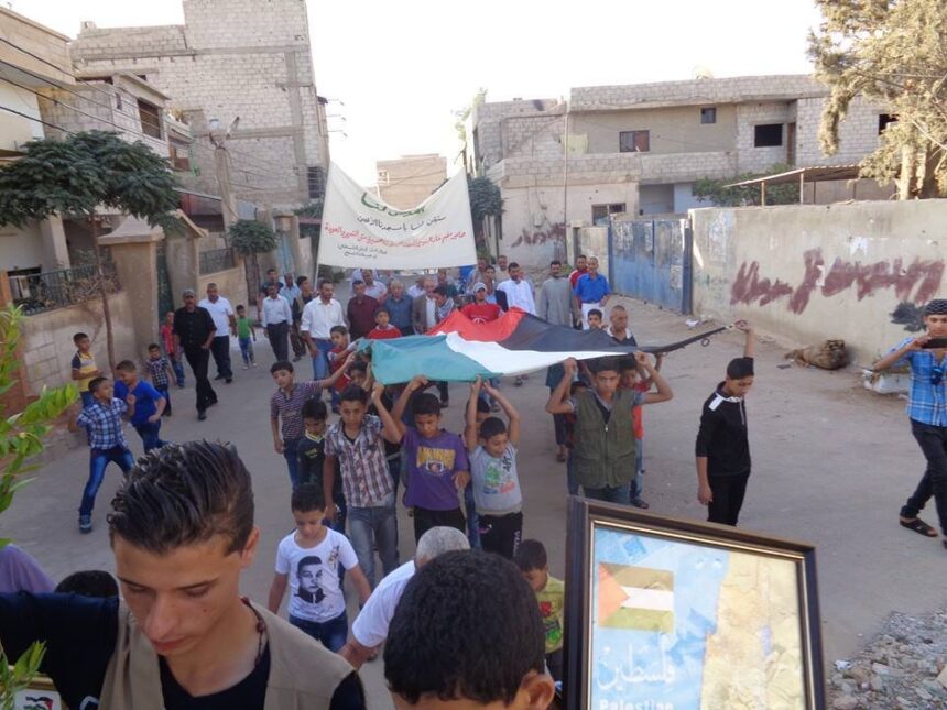 انطلاق مسيرات جماهيرية في مخيم اليرموك وخان الشيح تطالب بفك الحصار ووقف الدمار والتضامن مع المسجد الأقصى