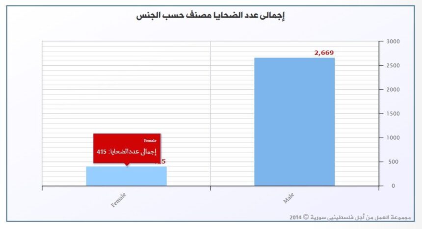 أكد فريق الرصد والتوثيق في مجموعة العمل من أجل فلسطينيي سورية أنه وثق (415) لاجئة فلسطينية قضت إثر الحرب الدائرة في سورية.