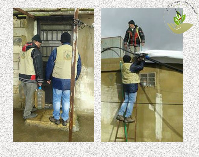 تزامناً مع بدء المنخفض الجوي الذي يسيطر على لبنان ومنطقة الشرق الأوسط نظمت لجنة فلسطينيين سوريا في لبنان جولة تفقدية للإطلاع على أوضاع العائلات الفلسطينية السورية المهجرة في منطقة البقاع، وأثناء جولتها قام كادرها التطوعي بتركيب شادر لمنزل أحدى العائلات الفلسطينية السورية، وذلك لمنع تسرب مياه الأمطار إلى داخل المنزل، كما قدمت اللجنة للعائلة مادة المازوت بهدف مساعدتها والتخفيف من اعبائها الاقتصادية .