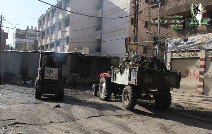 هيئة فلسطين الخيرية تستمر برفع وترحيل النفايات من مخيم اليرموك