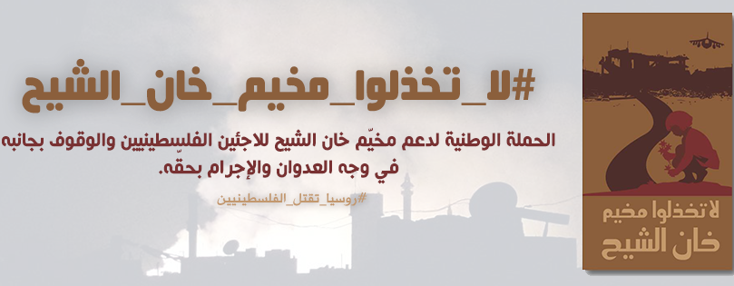 وشددت الحملة على إمكانية تدخل منظمة التحرير الفلسطينية من خلال قنواتها الدبلوماسيّة وروابطها العريقة بالاتّحاد الروسي للضغط على موسكو لوقف استهدافها الجوّي لمخيم خان الشيح المدني، وضرورة الوقوف بحزم لمطالبة وكالة “الأونروا” بعدم المشاركة في الجريمة الحاصلة من خلال استمرارها بتقديم الخدمات والإغاثة لسكان مخيم خان الشيح، والوصول إلى مخيمي اليرموك ودرعا بأسرع وقت ممكن.