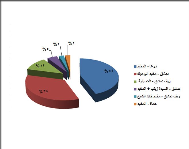وأكدت مجموعة العمل أن الضحايا الذين أعدموا توزعوا حسب المخيمات الفلسطينية والمدن السورية على الشكل التالي: (19) لاجئاً أُعدموا في مخيم درعا، و(18) في حلب، فيما أعدم (15) لاجئاً في مخيم اليرموك، و(7) آخرين في حي التضامن بريف دمشق،(5) لاجئين في مخيم السيدة زينب، ولاجئان في مخيم الحسينية، وآخر في مخيم العائدين حماة، ولاجئ في مخيم خان الشيح.