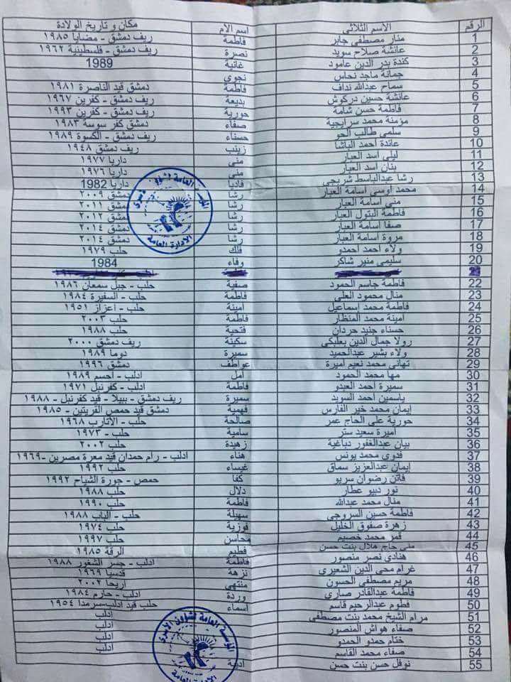 أفرج يوم أمس عن اللاجئة الفلسطينية، عائشة صلاح سويد، من مواليد ريف دمشق (1962)، حيث تم إطلاق سراحها ضمن صفقة تبادل للمعتقلين بين النظام السوري ومجموعات المعارضة السورية المسلحة في الشمال، والتي شملت (54) طفل وامرأة معتقلين لدى النظام.