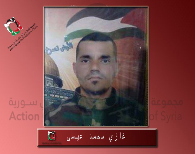 قضى اللاجئ الفلسطيني “غازي محمد عيسى” من أبناء مخيم السيدة زينب بريف دمشق، أحد عناصر قوات الصاعقة التابعة للنظام السوري، وذلك نتيجة استمرار الحرب الدائرة في سورية.