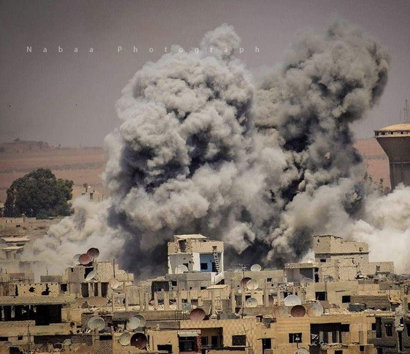 *الصورة لقصف الطائرات على مدينة درعا.