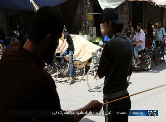 تداول ناشطون على موقع التواصل الاجتماعي (الفيس بوك) عدد من الصور تظهر عناصر من تنظيم “داعش” وهم يجلدون أحد أبناء مخيم اليرموك بحجة ارتكابه مخالفة شرعية، فيما أظهرت أحدى الصور عنصرين من التنظيم وهما يقومان بتأنيب شاب فلسطيني من أبناء المخيم لحلقه لحيته، حيث كتب على الصورة عبارة “الإنكار على رجل من عوام المسلمين لحلقه لحيته.
