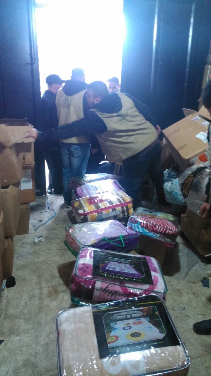 توزيع مواد غذايئة وأغطية على فلسطينيي سورية في مخيم البداوي