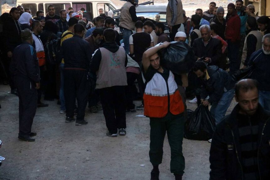 شاهد | وصول 29 عائلة من مخيم اليرموك المحاصر إلى بلدة يلدا المجاورة