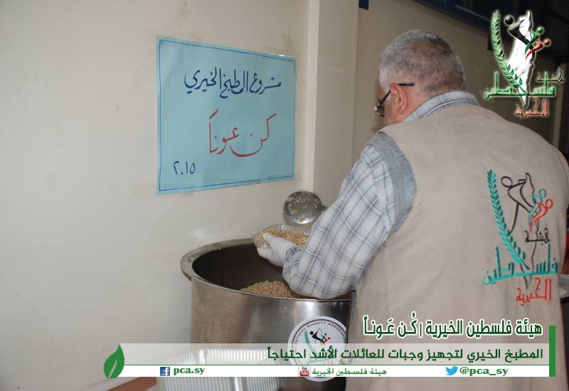 في إطار سعيها للحد من معاناة الأهالي المحاصرين في مخيم اليرموك للاجئين الفلسطينيين بدمشق، قامت هيئة فلسطين الخيرية بتوزيع حوالي (100) وجبة غذائية على بعض العائلات داخل المخيم.