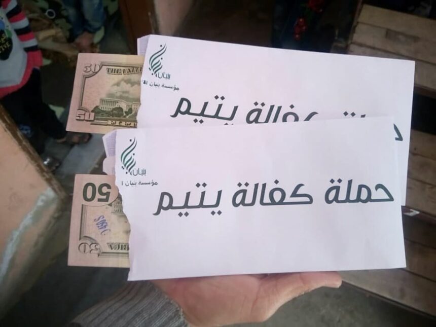 كما وزعت مؤسسة “بنيان الإنسانية” كفالات أبناء شهداء المزيريب ضمن حملة “كفالة يتيم”، حيث تم توزيع مبلغ (50) دولار أمريكي لـ (66) يتيماً.