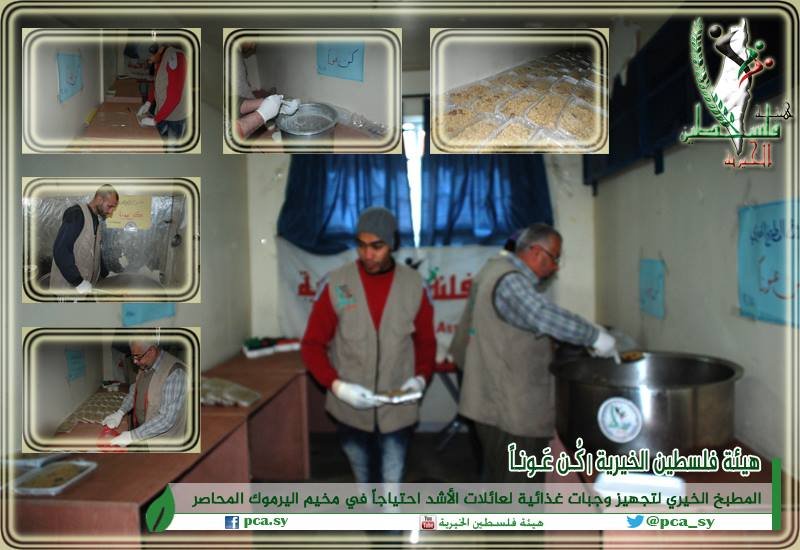في إطار سعيها للحد من معاناة الأهالي المحاصرين في مخيم اليرموك للاجئين الفلسطينيين بدمشق، قامت هيئة فلسطين الخيرية بتوزيع حوالي (90) وجبة غذائية على بعض العائلات داخل المخيم.