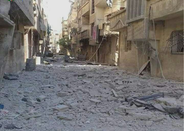 تعرض مخيم اليرموك للاجئين الفلسطينيين لغارات جوية وقصف عنيف يوم أمس الأربعاء، استهدف محيط شارع العروبة، أسفر عن وقوع أضرار مادية كبيرة في أبنية المخيم، وأشار مراسلنا إلى أن الطيران الحربي الروسي والسوري شن أكثر من (85) غارات جوية على مخيم اليرموك والمنطقة الجنوبية، كما ألقى حوالي (30) برميلاً متفجراً على اليرموك والحجر الاسود وأطراف بلدة يلدا والقدم، منوها إلى أنه سُجل سقوط (56) صاروخ أرض – أرض من نوع فيل بالإضافة الى عشرات القذائف الصاروخي، ما أسفر عن دمار هائل في البني التحتية والأبنية خلفه القصف العنيف بكافة أنواع الأسلحة، ونشوب حرائق في منازل المدنيين داخل الاحياء التي تتعرض للقصف، تزامن ذلك مع اندلاع اشتباكات عنيفة على جبهات المأدنية بحي القدم و وقطاع الشهداء في شارع فلسطين بمخيم اليرموك والحجر الاسود والتضامن.