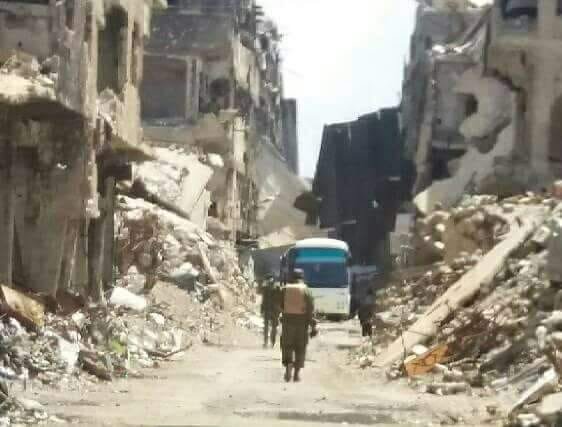 إلى ذلك قالت وسائل إعلام سورية، إن 5 حافلات تقل 200 عنصر من مقاتلي هيئة تحرير الشام خرجوا مع عائلاتهم من مخيم اليرموك إلى أماكن سيطرة مسلحي الهيئة – النصرة سابقاً إلى إدلب.
