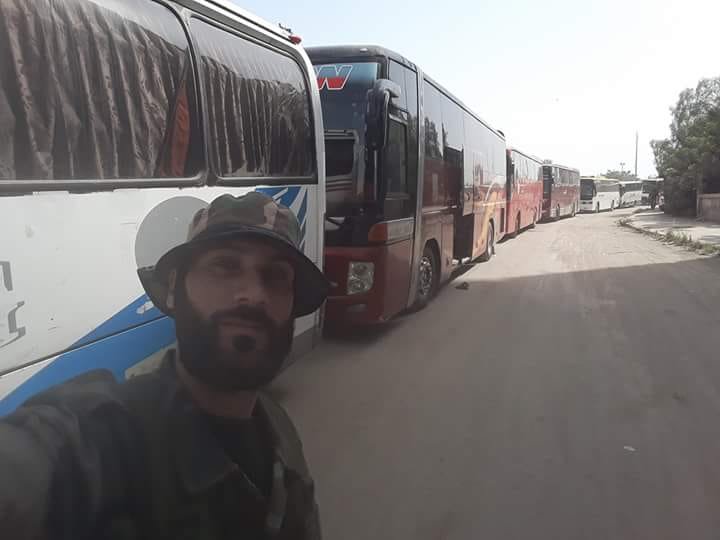 شاهد فيديو يظهر خروج الحافلات التي تقل عناصر تنظيم داعش من مخيم اليرموك إلى البادية السورية