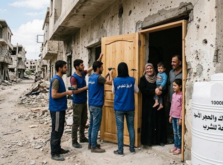 وبحسب المعلومات المتوفرة، يقوم الفريق، الذي يفضّل عدم الكشف عن هويته، بتركيب أبواب للوحدات السكنية التي تضررت أو فقدت أبوابها خلال سنوات النزاع، إضافة إلى إيصال خزانات مياه للعائلات المقيمة داخل هذه المنازل، وذلك بهدف تحسين الحد الأدنى من ظروف السكن للعائدين.